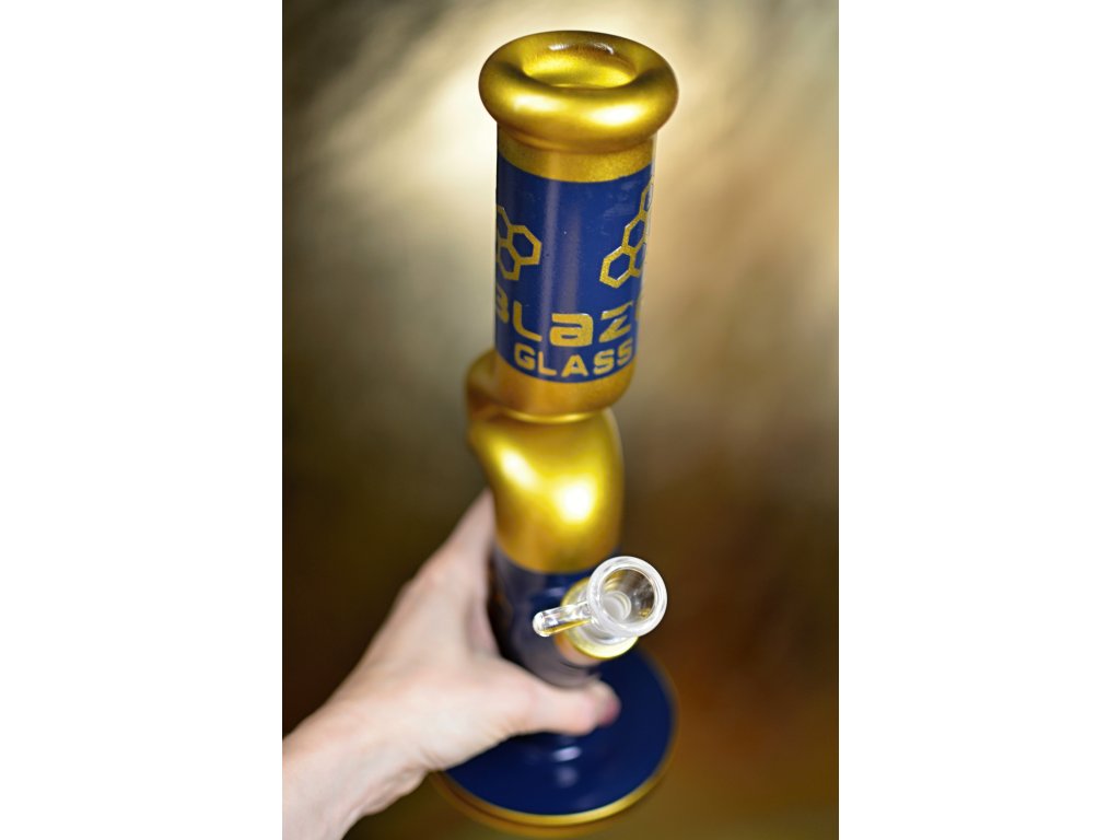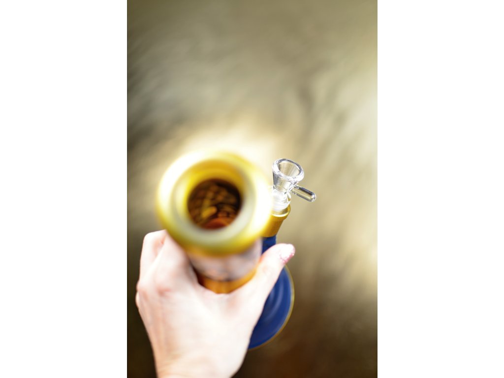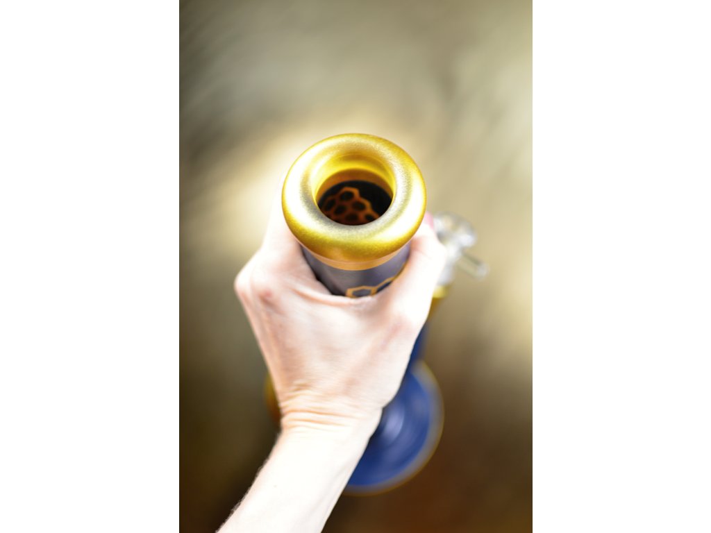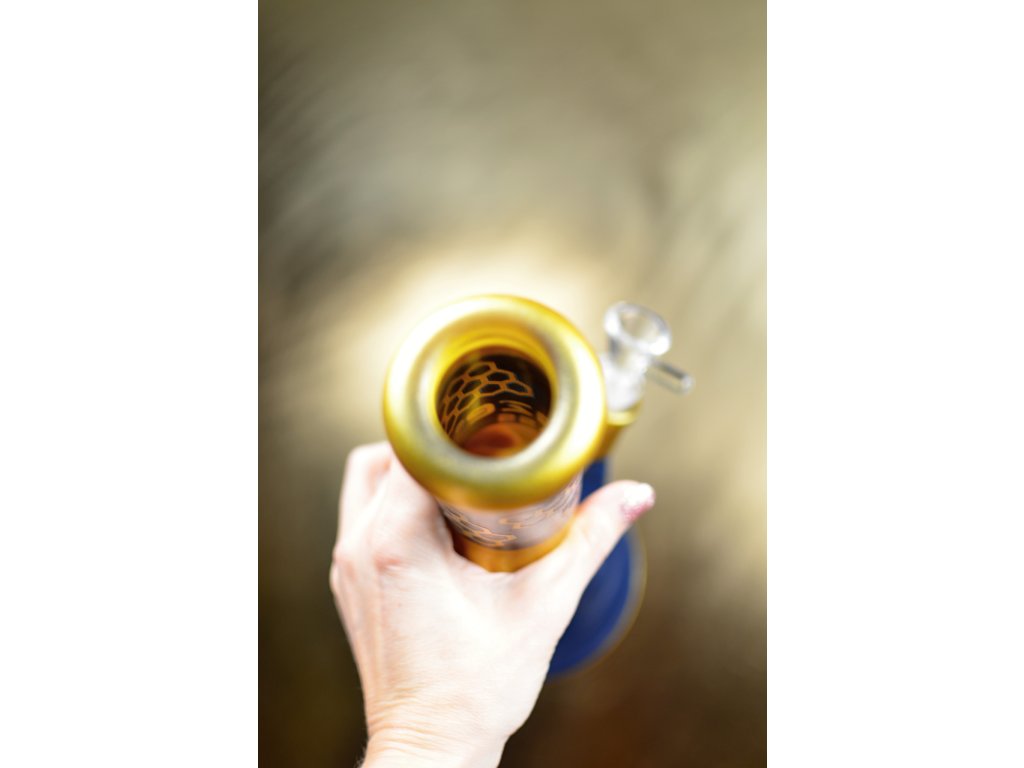 Připravte se na to, že budete v centru pozornosti s Blaze Glass Bongem, který je tak trochu jiný. Tenhle stylový kousek s výrazným kloubem je naprosto nepřehlédnutelný. Jeho oslnivá kombinace třpytivé zlaté a hluboké půlnoční modři z něj dělá skutečný skvost – "eyecatcher", který rozsvítí každou místnost.