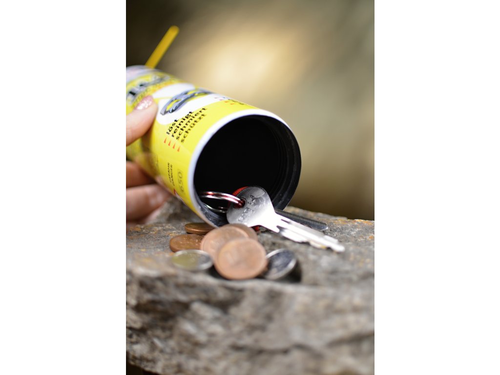Nenápadná plechovka, kterou ve spodní části odšroubujete a uložíte dovnitř co potřebujete.